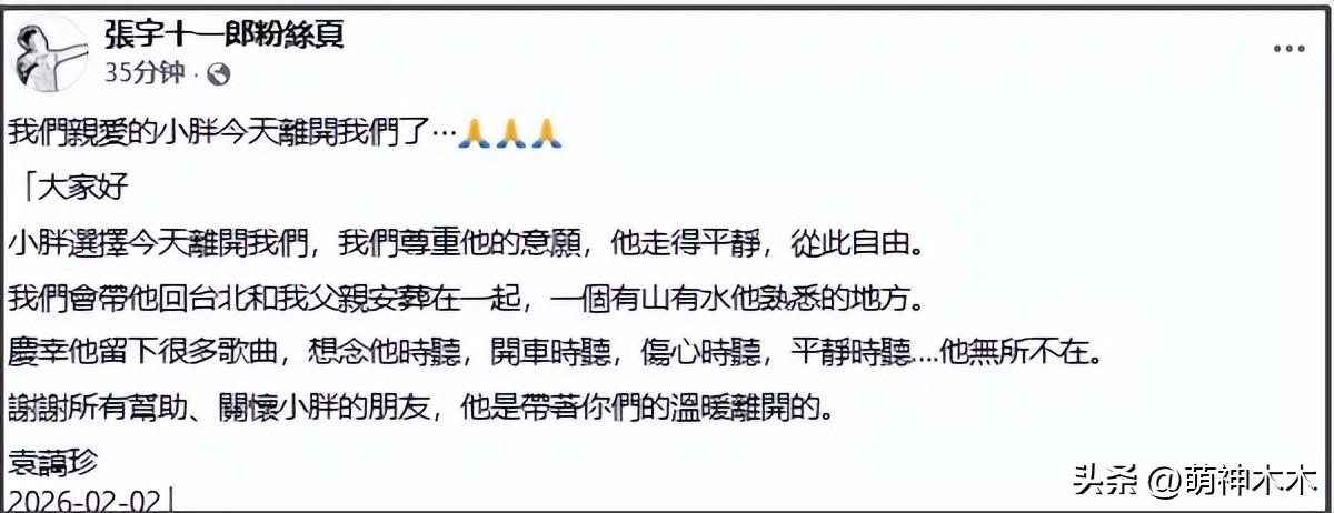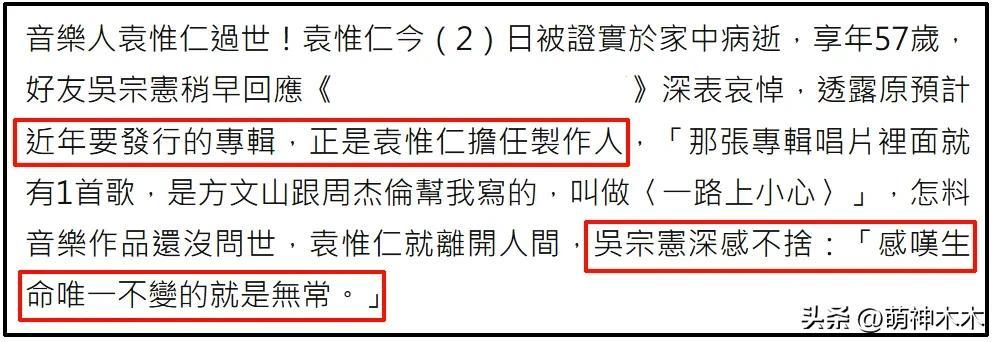 2月2日,57歲音樂製作人袁惟仁在家中病逝,家屬悼文稱將帶他回臺北與父親合葬在一起。而後,衆星紛紛用自己的方式悼念。