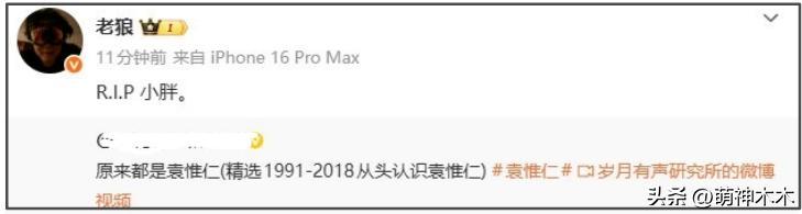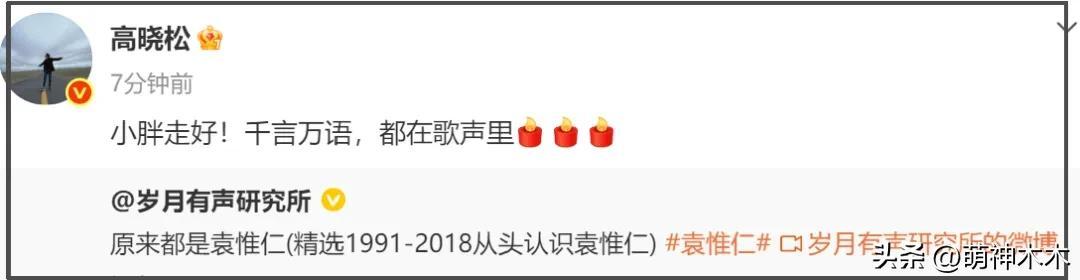 老狼和高曉松都轉發了《原來都是袁惟仁(精選1991-2018從頭認識袁惟仁)》精選作品發文悼念,老狼寫道:“R.I.P 小胖”,高曉松則表示千言萬語都在歌聲中。