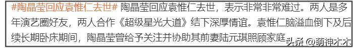 陶晶瑩聽聞袁惟仁去世後表示非常非常難過,她稱兩人是多年演藝圈好友,因爲合作《超級星光大道》結下深厚情誼。在袁惟仁患病後,她也曾協助袁惟仁前妻照顧家庭。