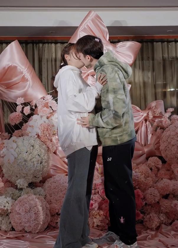 錢天一也是在親友的見證下,大聲答應“我願意”,兩人在歡呼聲中擁吻。並在一份愛的箴言書上按下承諾。