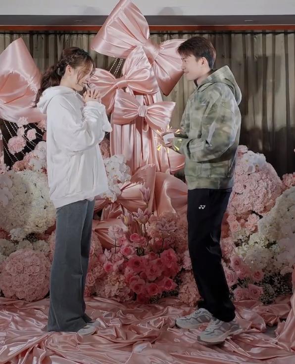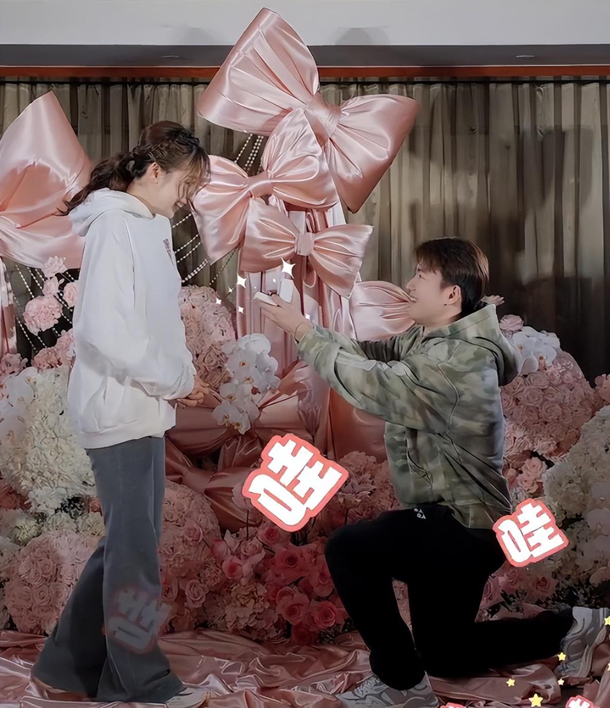 在生日現場,錢天一對着蛋糕許下願望,而當她睜開眼睛時,則看到的是王昶手拿鑽石戒指單膝跪在自己面前。是的,王昶在錢天一的生日上向她求婚了。