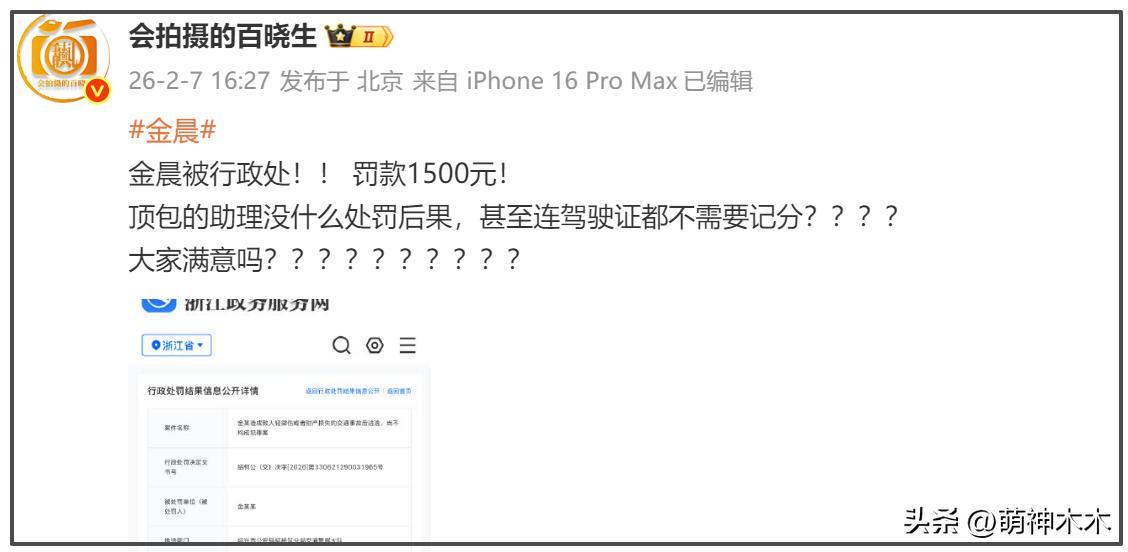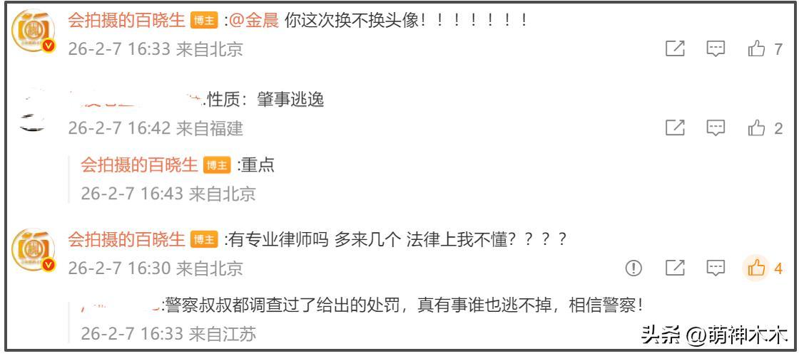 狗仔在發佈處罰截圖之後,直接艾特金晨,問她這次換不換頭像(前幾天金晨道歉後換頭像陰陽網友)……