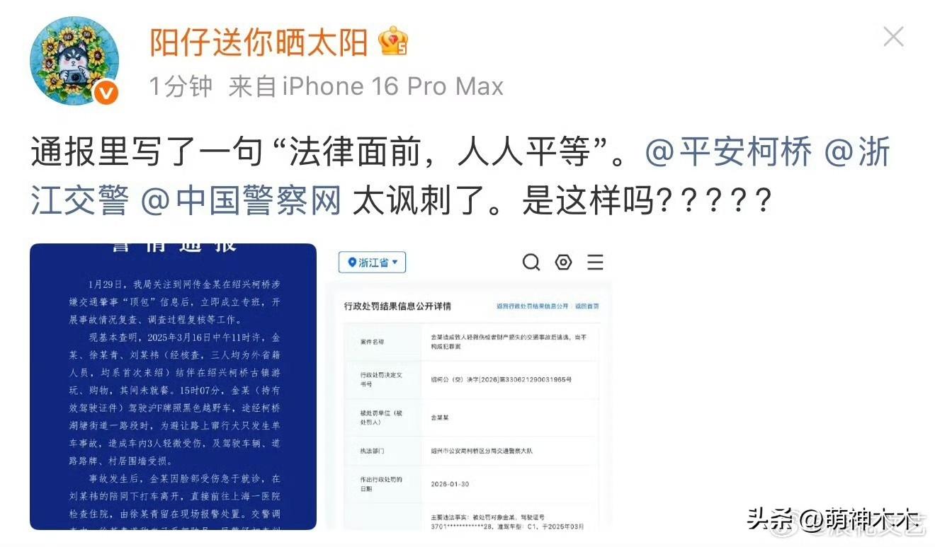 其實金晨有這個結果,也是意料之中。無論什麼原因,金晨在事故發生後,沒有主動報備,已經構成逃逸。至於後續的助理頂包,金晨也知情但未自首糾正,情況或許更爲嚴重,需要更進一步的調查處理。