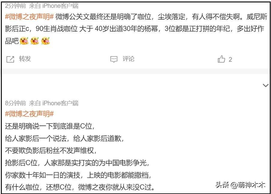 相比較之前較爲模糊的致歉聲明,微博之夜活動主辦方最新聲明清晰點出了兩位明星的名字,正是肖戰、楊冪,同時承認了座位爭議給出席微博之夜的明星和粉絲都帶來了影響。