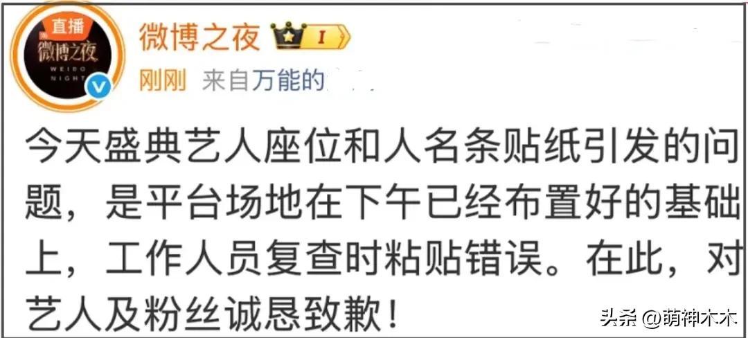 微博之夜活動開始,工作人員發現錯誤,第一時間予以糾正。