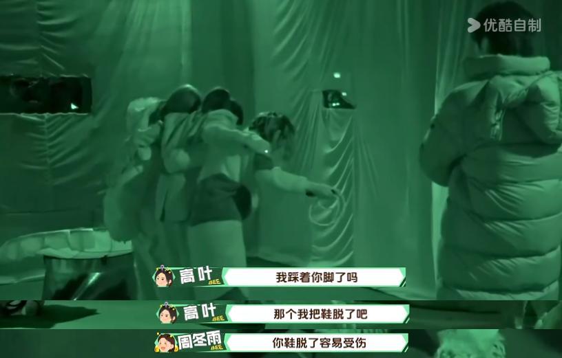 在暗室的時候完全就是雙向關心,高葉會對冬雨噓寒問暖,跳繩怕踩到她的腳立馬把鞋子給脫了,冬雨也擔心高葉脫了鞋容易受傷。