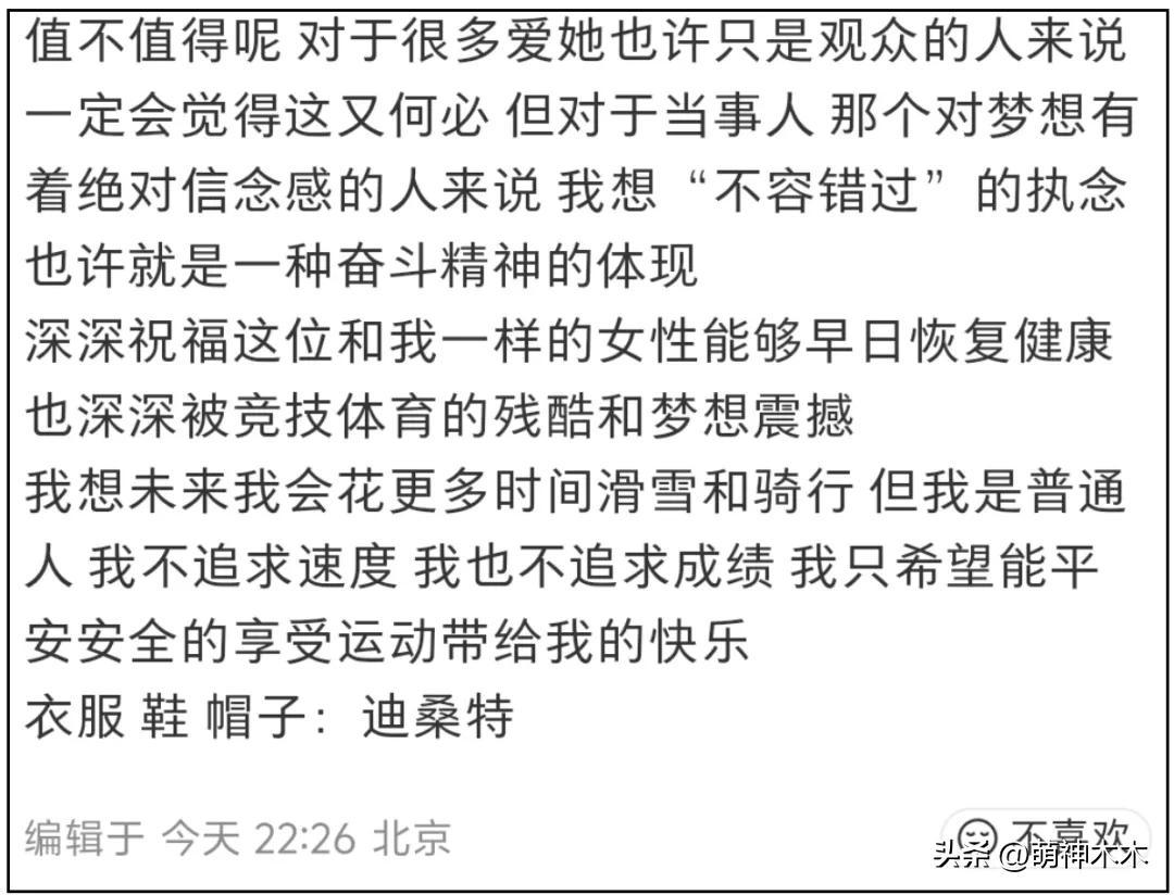 也就是說,楊天真竟然藉着一個極限運動運動員在奧運會重傷的熱度,宣傳起了邀請她觀賽的品牌。