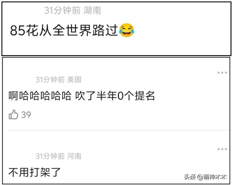 有人嘲諷85花又一次從全世界路過了,有人直言85花炒作半年都爲他人做嫁衣裳——不可否認,正是因爲85花有望提名,金像獎的話題度都高了不少。