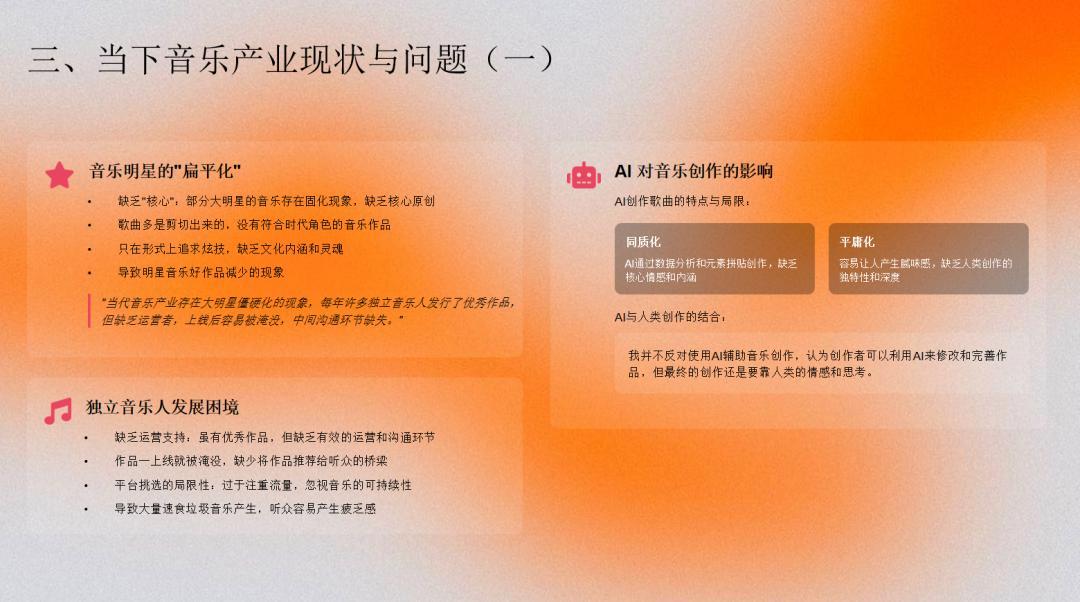 面對AI的衝擊,音樂平臺每天上架的數萬首歌曲分散着每個人的注意力,從姚謙親歷的經驗來看,如今的音樂明星失去了以往的號召力,另一方面,儘管這也給了很多獨立音樂人新的機會,但過於注重流量和數據,一味地追求“短平快”的音樂市場,好的音樂作品往往很難發現。而面對音樂行業中日益增長的溝通斷層,A&R作爲一個溝通協調者的角色,在如今顯得愈發重要。
