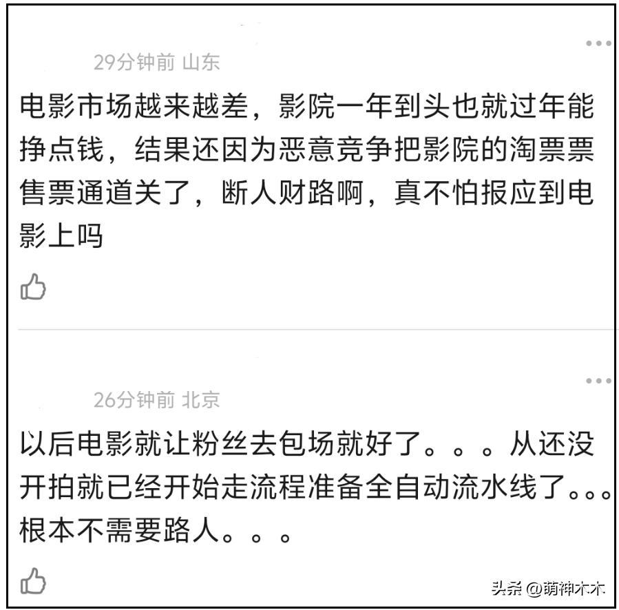 看不看電影是觀衆的選擇,看什麼電影也應該讓觀衆選擇,資本干擾影院排片,本質是剝奪觀衆選擇權,影院也好、觀衆也罷,可以看預售成績排片、買票,可以閉眼排、閉眼買,可以排爛片、看爛片,但是不可以沒得選。