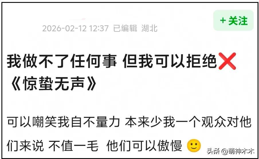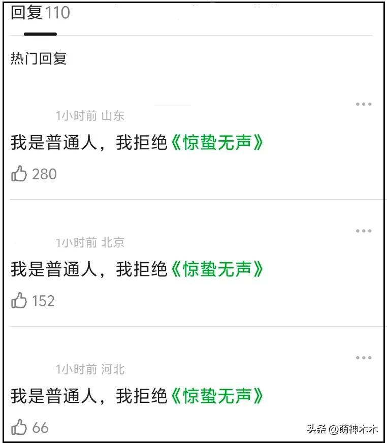 偏偏這時候還有影院站出來控訴《驚蟄無聲》發行方干擾排片,隨着影院當事人出面發聲,已經有網友表示要抵制《驚蟄無聲》,一條“我是普通人,我拒絕《驚蟄無聲》”的帖子引發上百位網友跟帖。