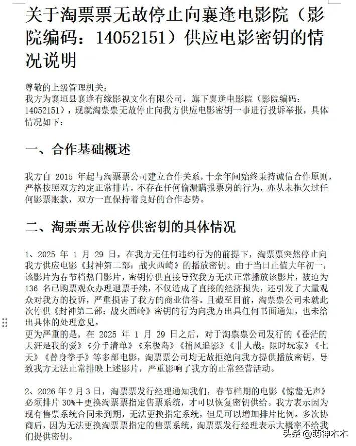 出面發聲的當事人是一位十年從業者,他是一家縣城影院的負責人,從2025年開始,他負責的影院連續兩年被春節檔電影發行方干擾排片——2025年是《封神2》,2026年是《驚蟄無聲》。
