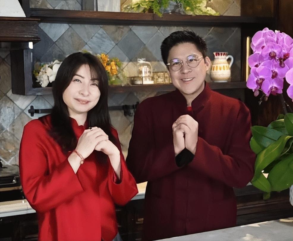 霍啓剛、郭晶晶夫妻倆穿着紅色服裝,新年氛圍感拉滿。