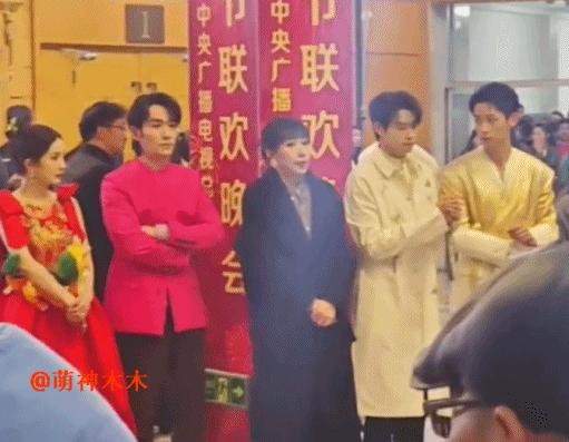 其他男星都穿着紅色西裝,開開心心打招呼,似乎節目彩排非常順利。李昀銳和白鹿是同一個節目,在臨上場彩排前還有說有笑。