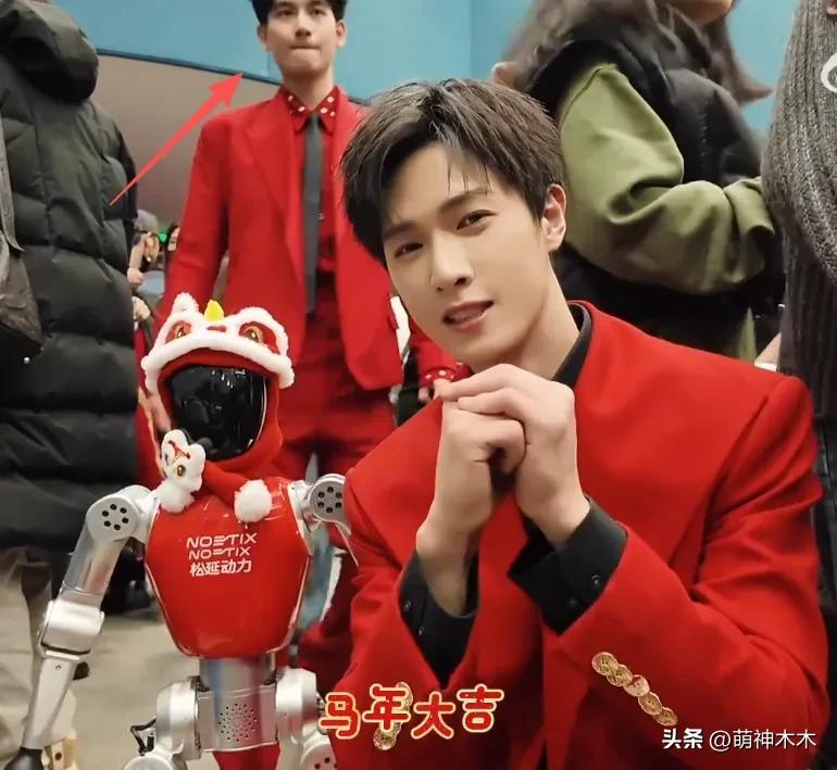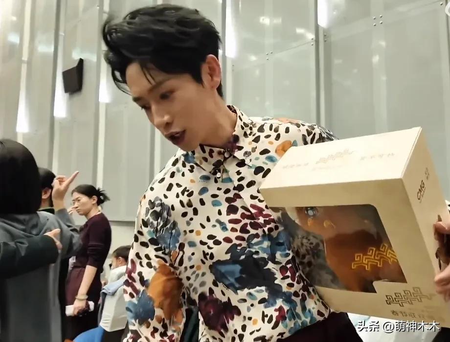 除了這些小生之外,實力唱將魏晨也現身後臺,手裏還拿着個大盒子,似乎是馬年春晚的周邊。魏晨的花襯衫也比較亮眼,終於不是千篇一律的紅色穿搭了。