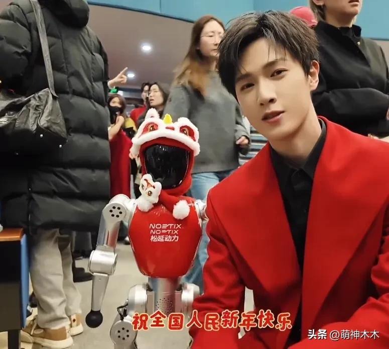 走廊裏還偶遇了陳小春,造型十分“閃亮”,看到機器人還主動握手,十分配合幕後花絮採集,營業非常積極。