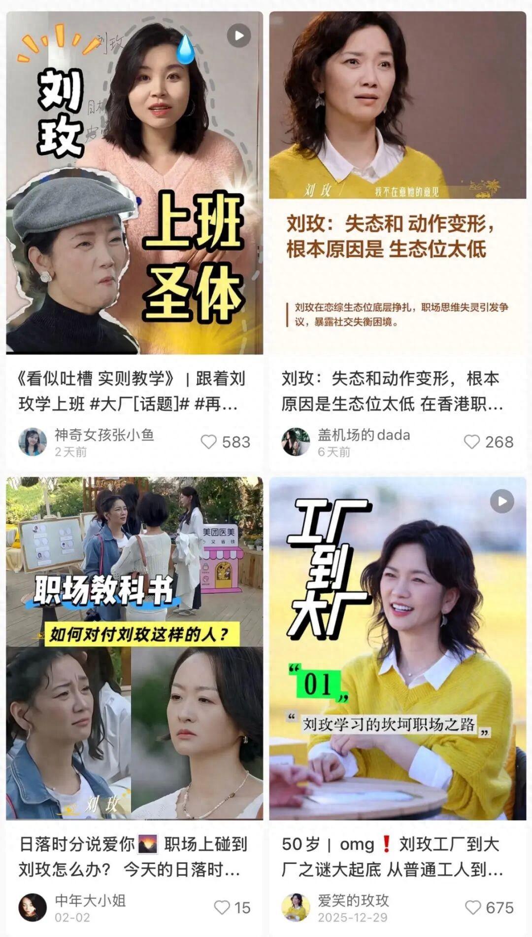 在抖音和小紅書,劉玫的經典片段被剪成幾十秒的短視頻,劉玫教學情話、劉玫攪動風雲、Ken治劉玫等話題持續發酵。