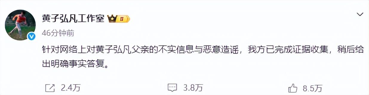 搜狐娛樂訊 14日,網曝黃子弘凡爸爸詐騙學生,打着“內部名額、保錄取”的旗號,收取鉅額費用,但不辦事。對此,黃子弘凡工作室回應稱:“針對網絡上對黃子弘凡父親的不實信息與惡意造謠,我方已完成證據收集,稍後給出明確事實答覆。 ”