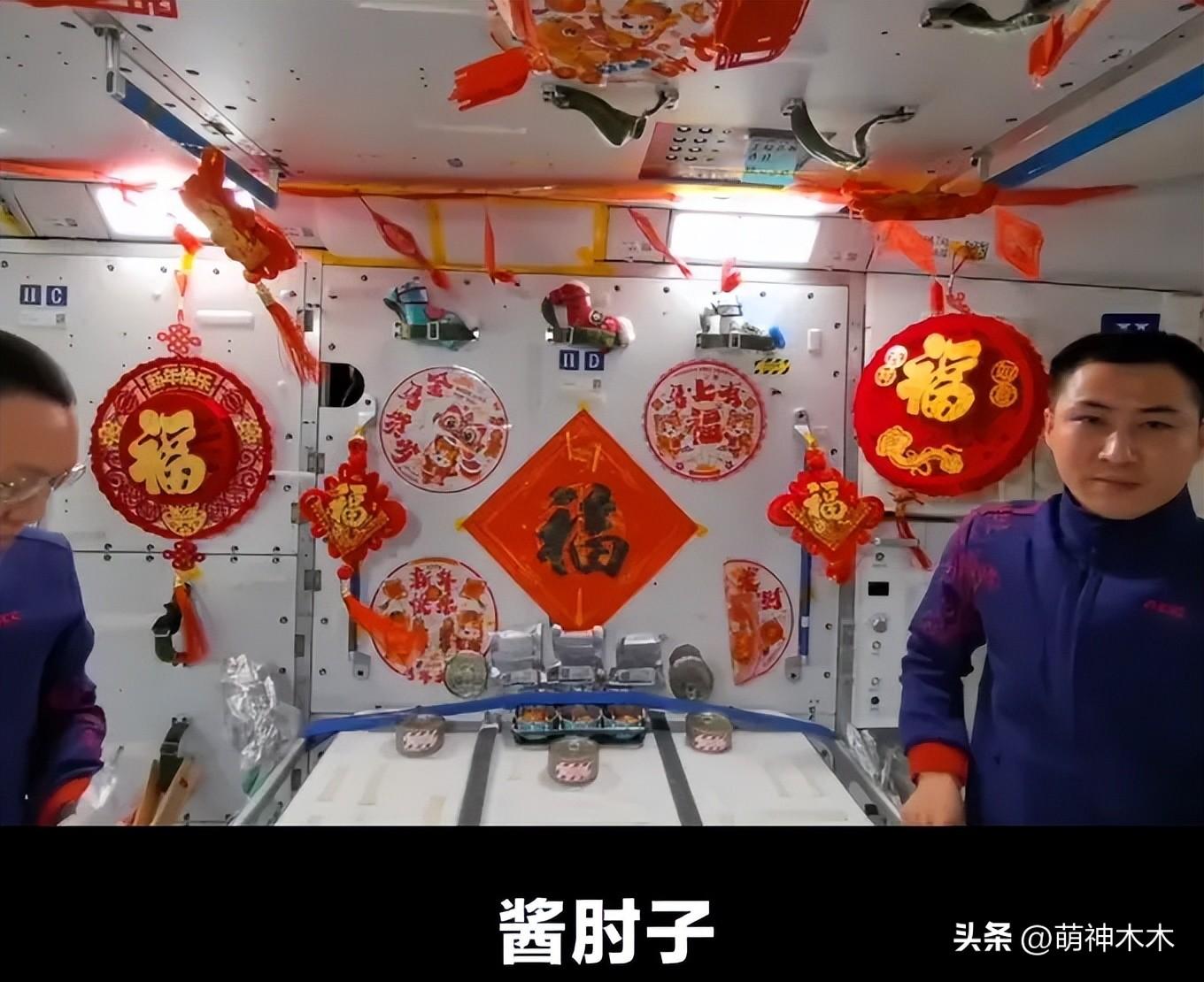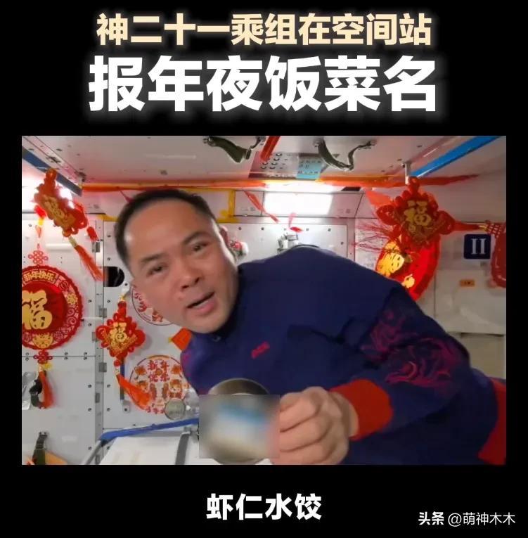遠在空間站的神二十一乘組,也給全國人民發來了“來自太空的新年祝福”,還給大家來了一個報菜名,空間站的補給也很豐富,有水餃還有各種肉菜,現場佈置也很吉慶,年味十足!