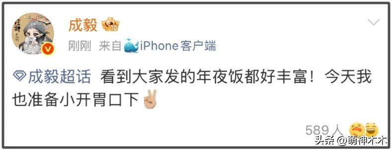 成毅空降粉絲超話和粉絲互動,可能是因爲年夜飯太好喫了,成毅都沒來得及拍照,只能以報菜名的形式和粉絲分享菜單。