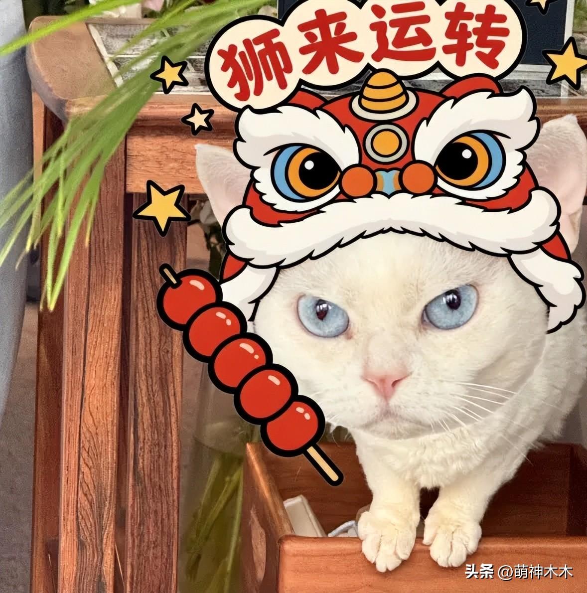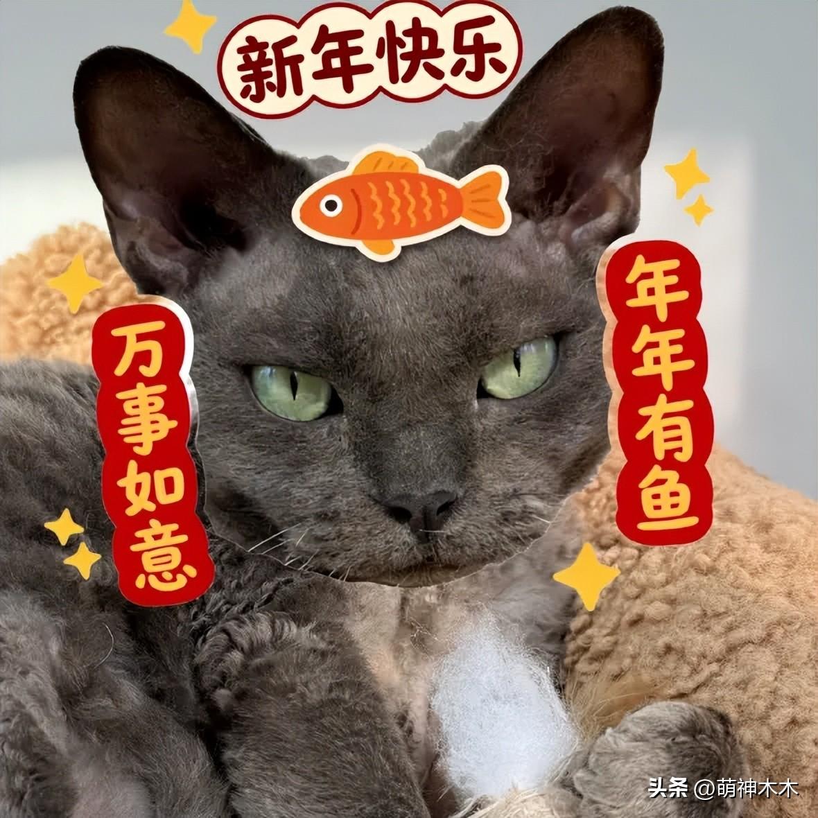 就連家裏的貓貓照片都被P上了對聯,貓貓的新年願望很簡單“年年有魚”就好啦!