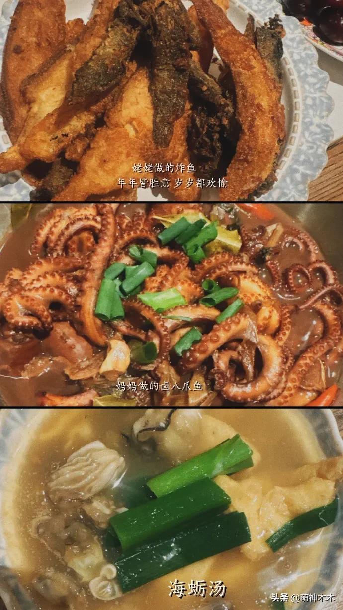 陳意涵曬出自己的新年總結,祝福大家“新的一年,都好”,還曬出了姥姥做的炸魚和媽媽做的滷八爪魚還有海蠣湯,看得出來陳意涵家很喜歡喫海鮮了。