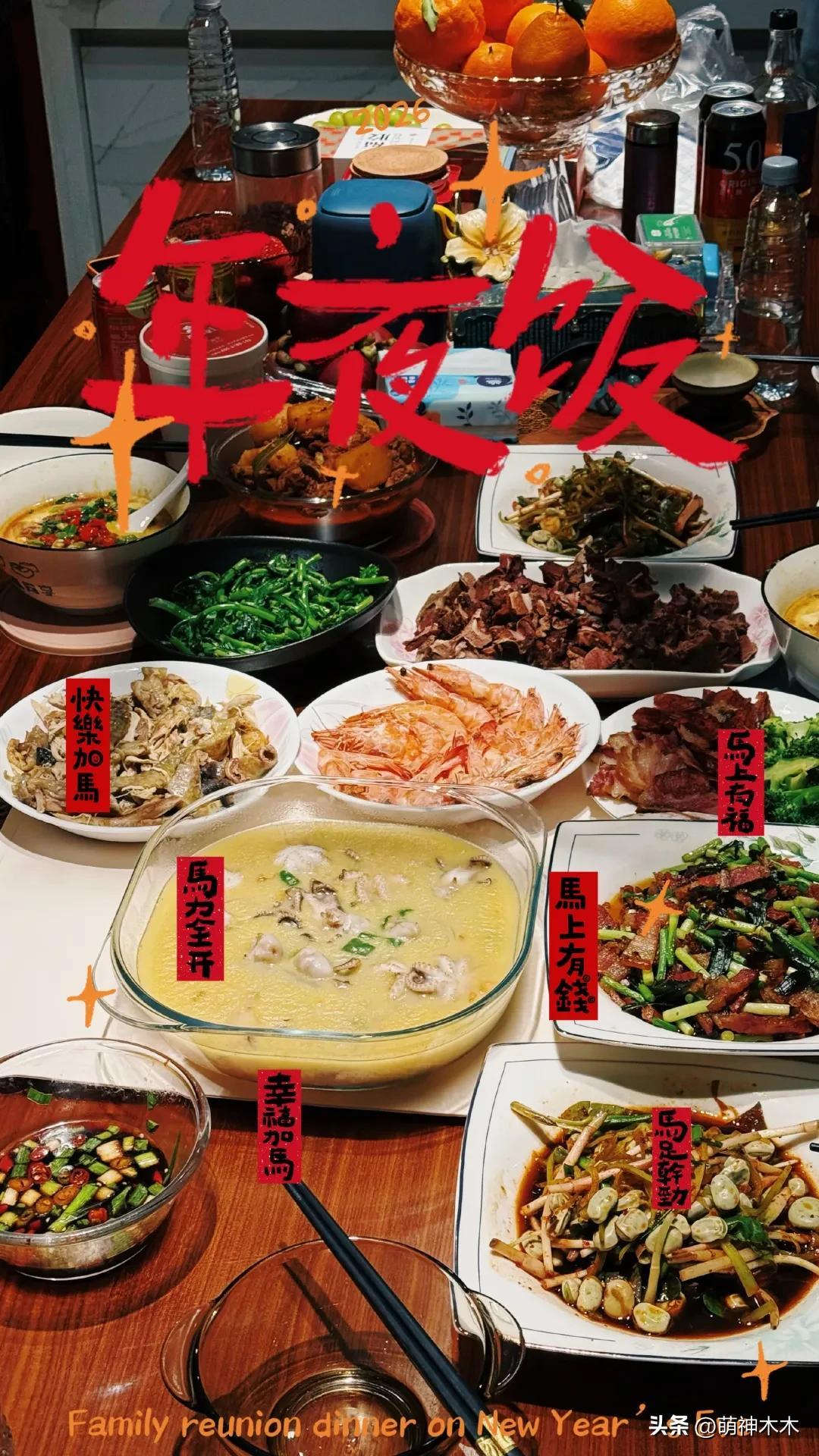 江映蓉還給每道菜都起了名字,“馬上有福”、“馬上有錢”、“快樂加馬”充滿對新的一年的憧憬。