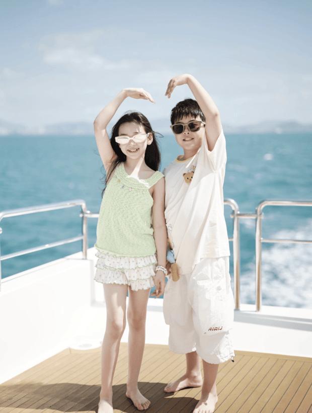 搜狐娛樂訊 近日,一組小酒窩和朵朵出海合影釋出。
