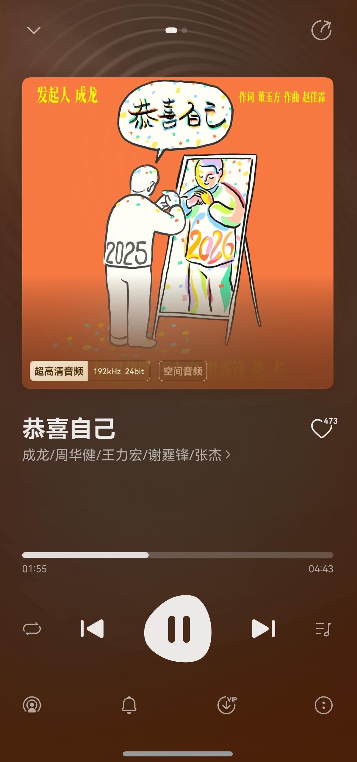 春節聽歌,真的被鴻蒙華爲音樂的體驗驚豔到了。超高清音頻和空間音頻這兩個功能,讓每首歌都有了“專屬待遇”。過年不就圖個熱鬧喜慶嘛,《恭喜自己》配上這音質,鴻運馬上來的氛圍即刻拉滿。特別建議大家戴上耳機後打開空間音頻,感受一下五位天王“圍着你唱歌”是什麼體驗,給耳朵也過個好年。