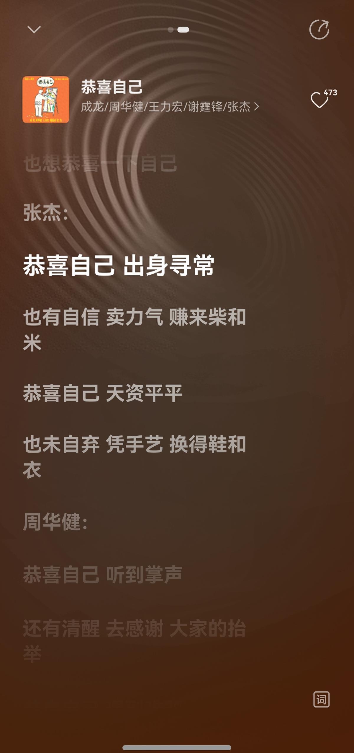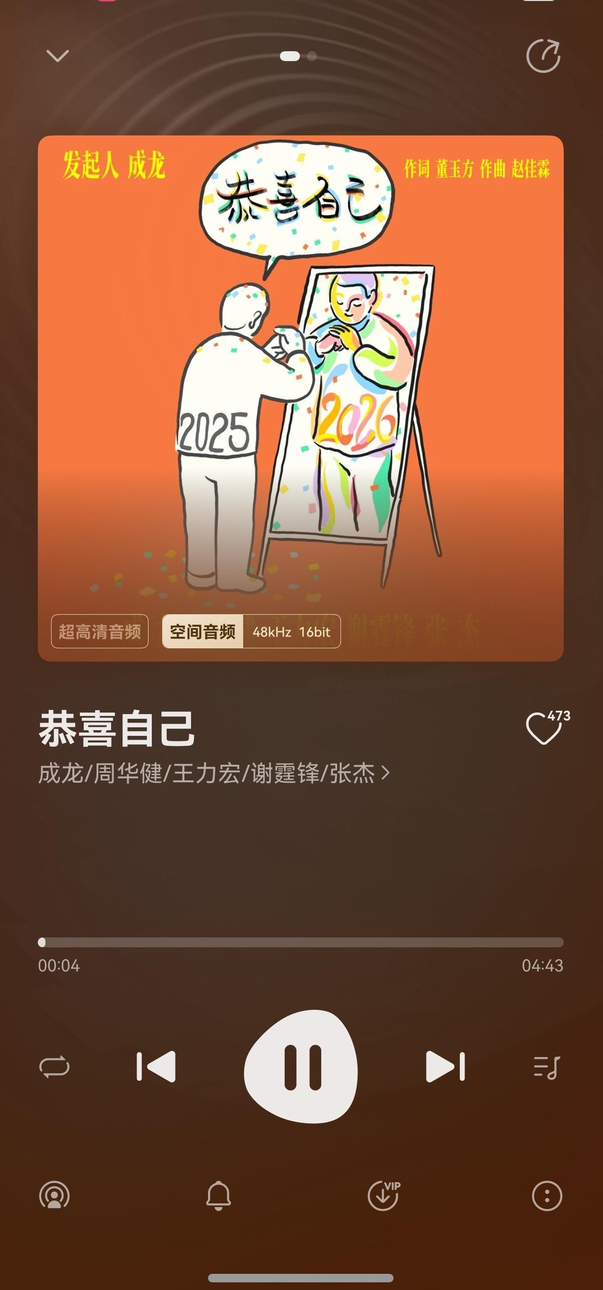 大年初一睡醒第一件事,我還是保持了上班時的習慣,打開華爲音樂聽一會兒歌,幫助自己更清醒,結果突然發現成龍、周華健、王力宏、謝霆鋒和張傑一起演唱的一首新歌《恭喜自己》。橫跨50後到80後,是名副其實的神仙陣容。作爲從小聽着他們歌長大的90後,必須第一時間先聽爲敬。
