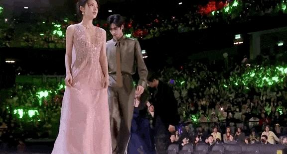 大大方方牽手進場,