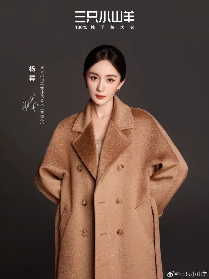 2022年,三隻小山羊投入5000萬和分衆傳媒合作在全國50個城市的寫字樓電梯間進行廣告轟炸,將一個橫空出世的新品牌和“十九年專業做羊絨大衣”的心智植入消費者的大腦,用“裸穿不扎人”這種極限賣點直擊人們對大衣厚重扎人的痛點,突出小羊絨是如何細膩柔軟。品牌也在用明星效益來提升品牌價值,比如它從2023年開始邀請高圓圓、楊冪等有流量又有形象的明星代言,在提升審美話語權的同時,創造單款銷售額破億的成績。
