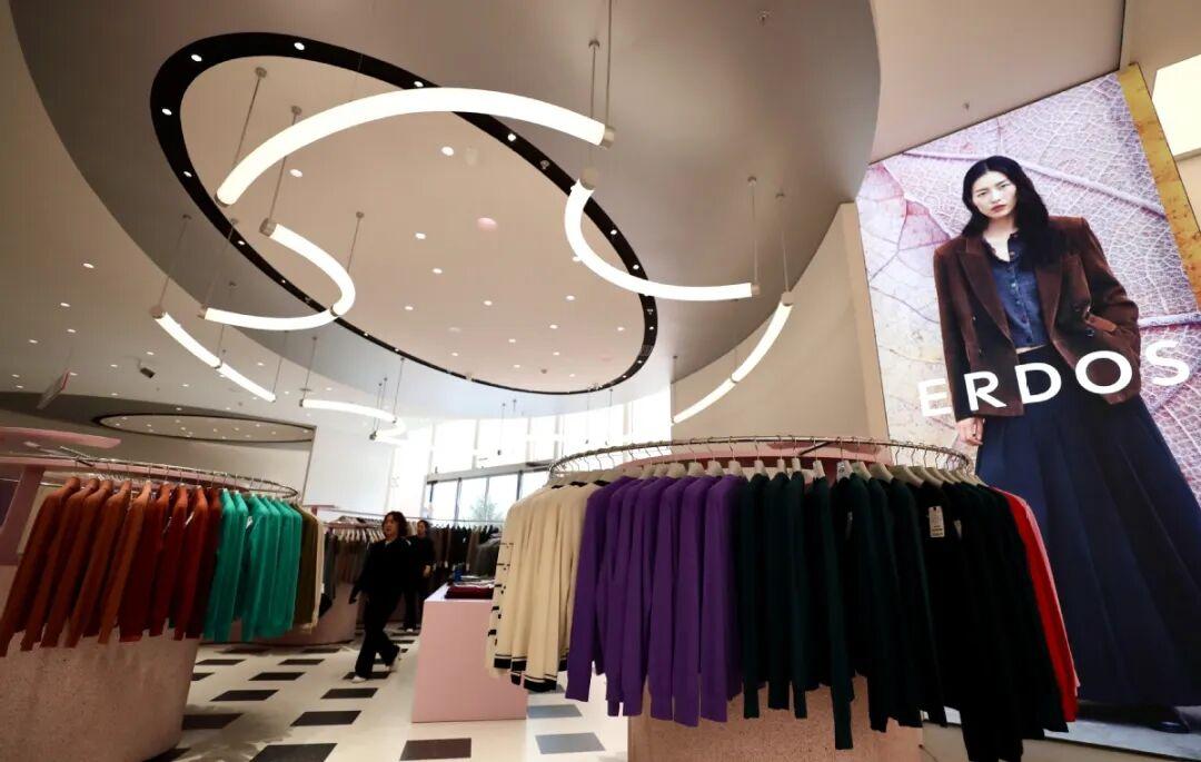 首先是按客羣細分拆分成奢侈、時尚和年輕化的品牌,包括頂奢線1436、核心線 ERDOS、經典款的鄂爾多斯1980以及年輕線BLUE ERDOS。各個品牌在設計和價格上首先形成了互不相同的矩陣。1436 挑戰極致輕克重,紐扣甚至會使用南洋珍珠貝或天然牛角,定價直衝 ¥8,000 關口;ERDOS更注重時裝剪裁,在 ¥2,000-3,500 區間輸出審美溢價;鄂爾多斯1980則主打舒適實穿,用經典款承接全年齡客羣;品質年輕入門的 BLUE ERDOS 價格僅在 ¥1,000 左右。