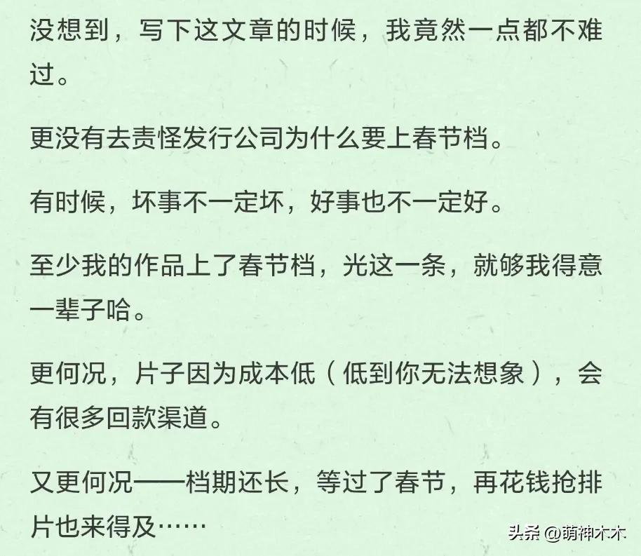 作爲業內,《消失的我》的編劇直言,只要能上春節檔,就夠他們得意一輩子,片子成本低,會有很多回款渠道,過了春節檔,還有機會花錢搶排片——別看這個導演哭、那個編劇鬧的,人家電影圈還是不缺錢賺。