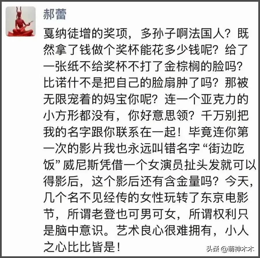 還記得辛芷蕾拿了威尼斯影后之後,郝蕾發朋友圈罵了大半個電影圈,也是和《消失的我》的編劇爆料的戛納都能買獎對上了。