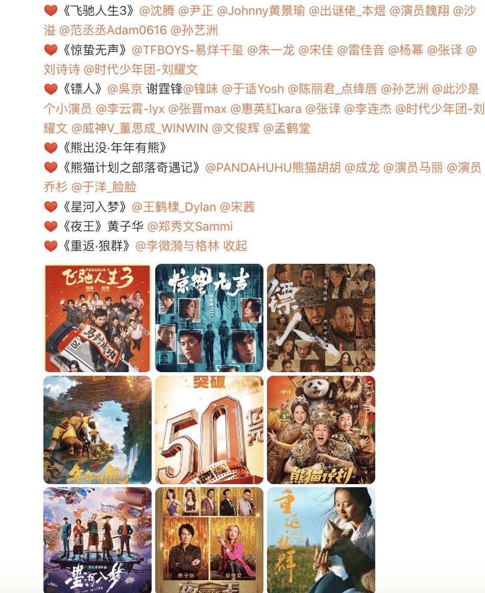 2026年春節檔電影包括:《飛馳人生3》《驚蟄無聲》《鏢人》《熊出沒·年年有熊》《熊貓計劃之部落奇遇記》《星河入夢》《夜王》《重返·狼羣》。