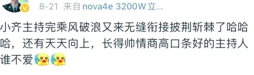 參加《主持人大賽》的時候還特意穿了一件撒貝寧同款