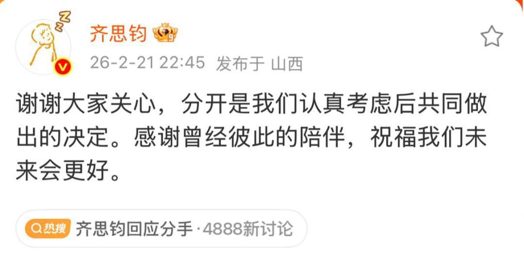 新年第一對因爲分手刷爆熱搜的情侶是齊思鈞和劉夢章