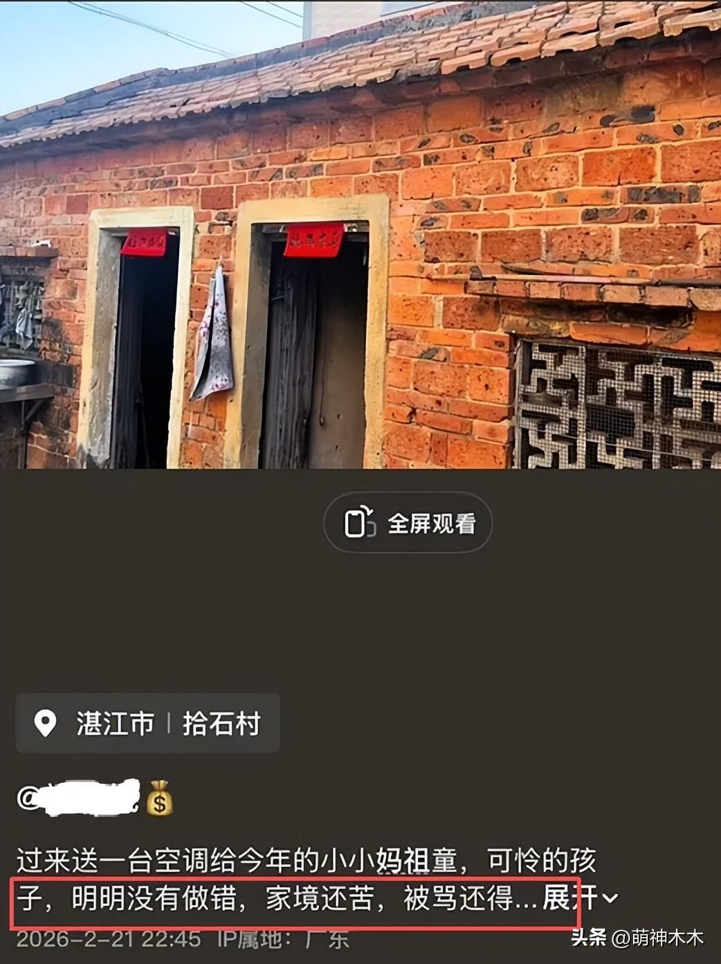 還有村民曬出了10歲女童的住宅,是簡陋的一層磚瓦房,門窗及牆壁都沒有做任何裝飾,門是木門,牆壁上被燻得黑黑的,原始樸素。發佈者IP定位在村裏,稱10歲女童並沒有做錯什麼卻被罵很心疼,還表示女童家境苦。目前該內容已被刪除,真假有待證實。