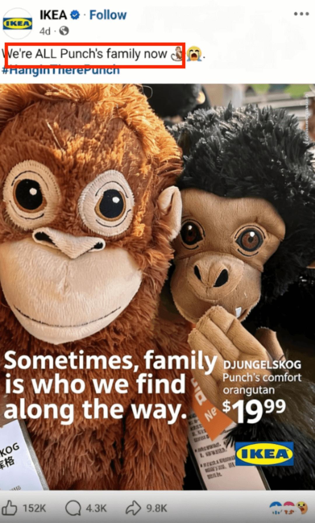 它從中挑選了一隻來自宜家的紅猩猩陪伴自己
