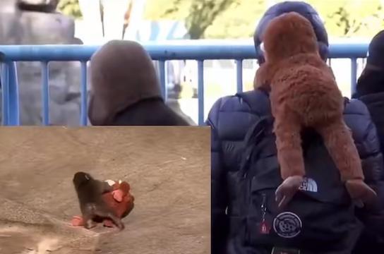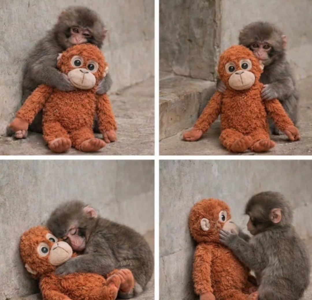 爲了緩解它的思母情緒和孤獨,飼養員給了它一堆玩偶,
