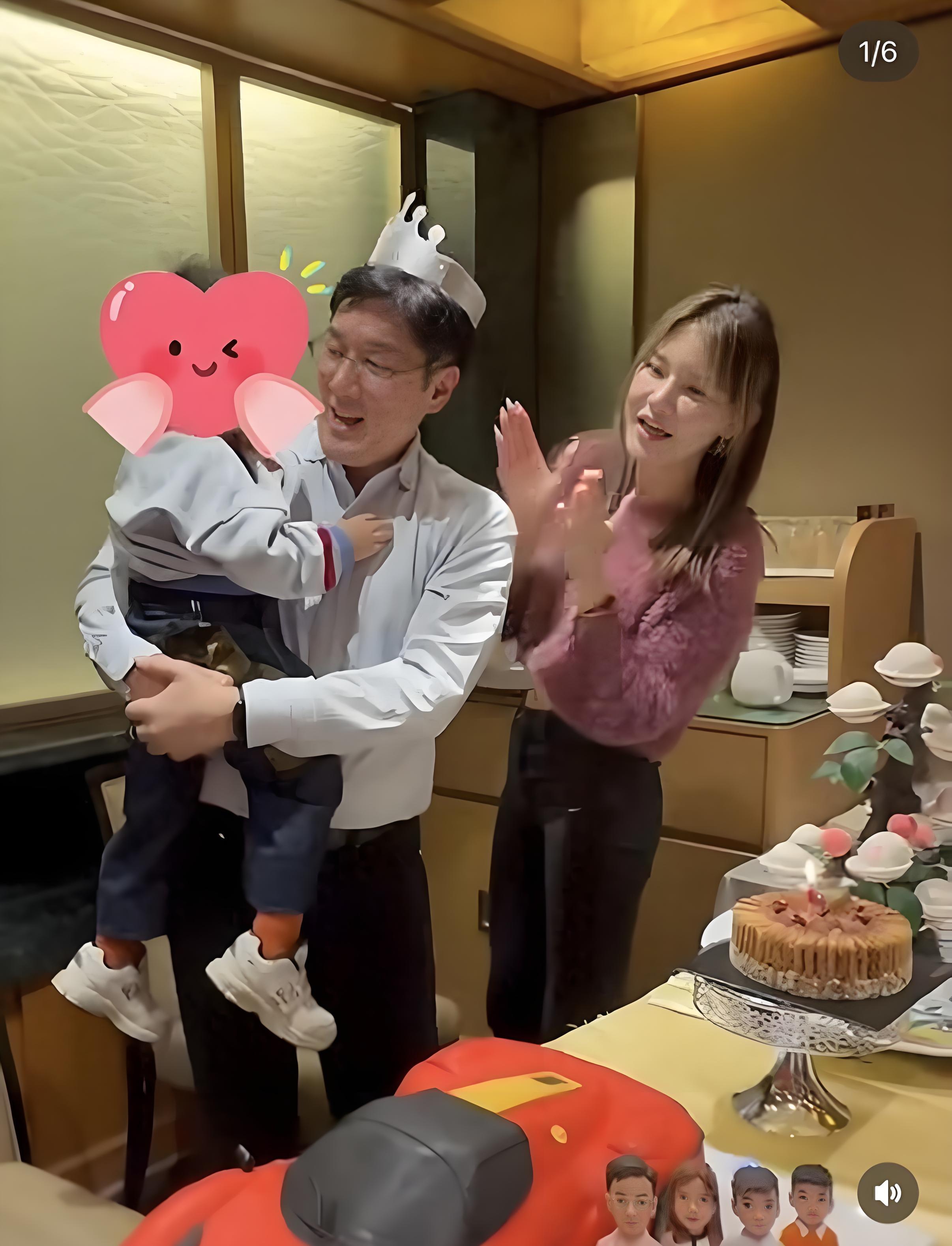 只見兩人抱着他們的小兒子唱生日快樂歌,絲毫不給馬清鏗原配夫人留一絲體面。