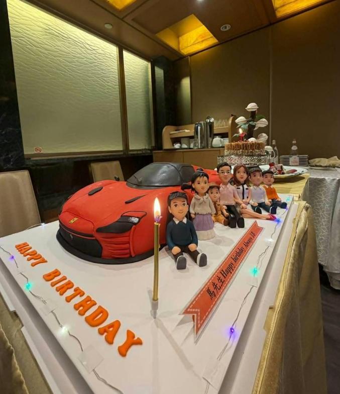 蛋糕上的那輛紅色法拉利,是馬清鏗現實生活中的愛車。