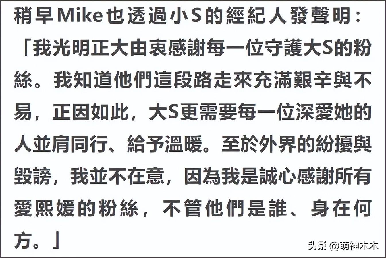 有意思的是,從S媽的回應看,她對小S老公私下行爲並不知情,一開始還信誓旦旦否認許雅鈞給女粉絲髮大S出殯照,得知許雅鈞承認之後,才緊急改口,看來S家也不是鐵板一塊啊。