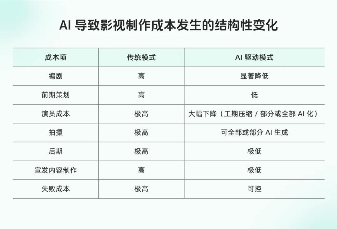 - AI不會讓影視行業更公平,甚至不會讓創作更平權,只會讓技術能力更便宜、更普惠,讓行業權力和影響力更加集中。產業鏈權力和市場價值將進一步向擁有長效系列化IP的平臺和少數內容公司聚攏。