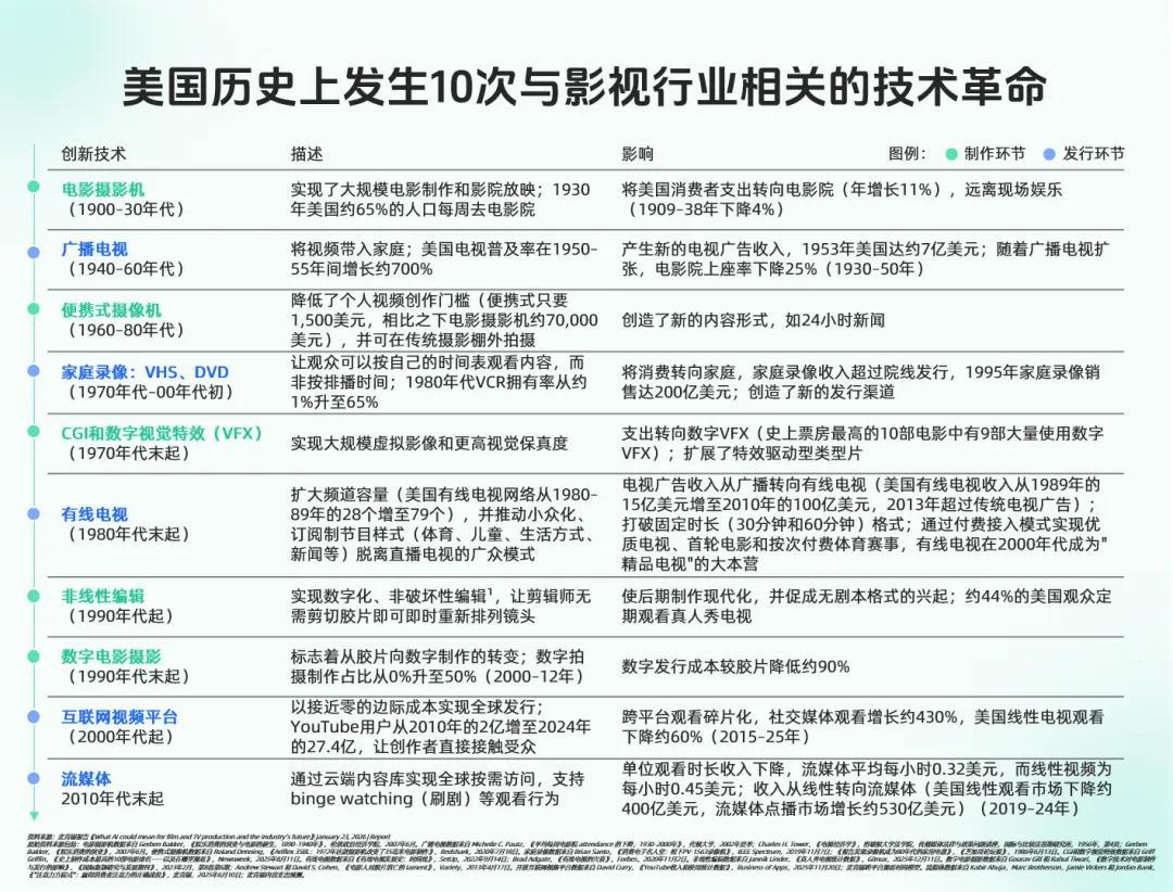 麥肯錫在近期發表的一篇題爲《AI對影視製作和產業未來意味着什麼》的報告裏,梳理了20世紀初以來美國發生的10次與影視行業相關的技術變革。