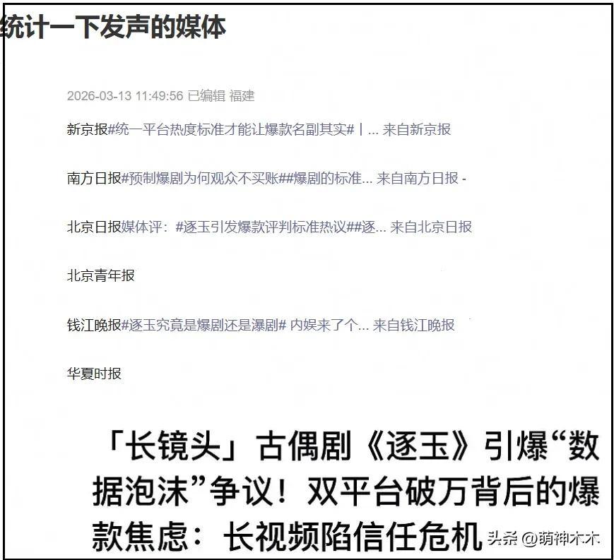 因爲幾乎每一家發聲媒體報道重點都在於《逐玉》疑似數據造假。