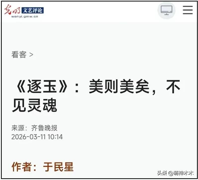 寧夏日報旗下雜誌《Vista看天下》和光明網轉載的齊魯日報,都在標題隱約暗諷了《逐玉》所謂出圈梗“男帥女美”。