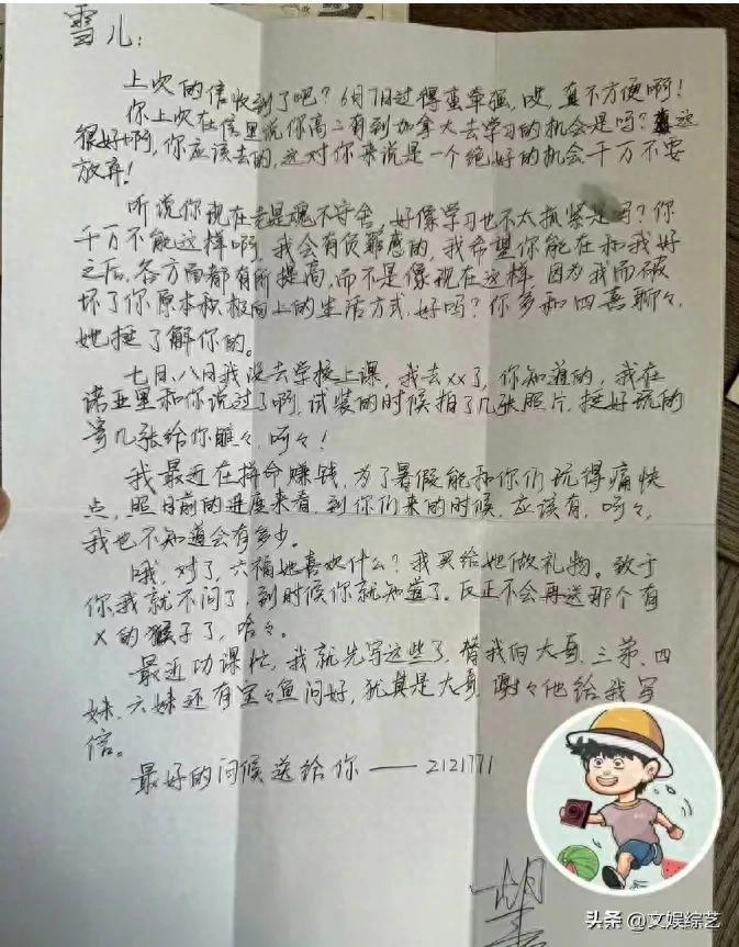 信裏沒有甜言蜜語,只有最實在的關心:“你高二去加拿大留學的機會一定要抓住,這是絕好的機會,千萬不要放棄”“我最近在拼命賺錢,暑假就能去北京見你了”。