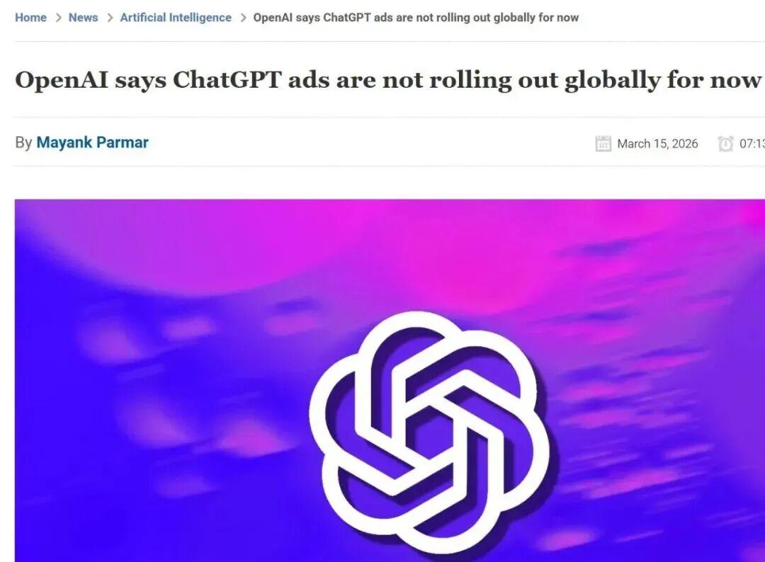 OpenAI表示廣告業務尚無在全球推廣計劃